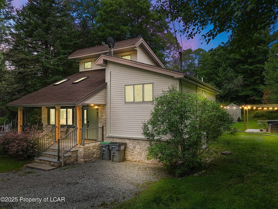 Escape to this beautifully renovated 3-bedroom, 2-bathroom home tucked in the heart of the Poconos, where nature & comfort meet. Perfectly positioned across the street from the serene Lehigh River and surrounded by state forest lands, this property offers the peace, privacy, and scenery you've been searching for with only 1 Neighbor. Step inside to find a bright, open-concept living space featuring modern finishes throughout. In the foyer you will find a large open closet & foyer area. Traveling into the Living Area you will find a large open Living Room, Dining Room & Kitchen Area. The updated kitchen boasts two tone white & rustic walnut cabinetry, stainless steel appliances, floating shelves, shiplap backsplash & Coffee Bar Area. The Living Room features high ceilings & a cozy Fireplace.