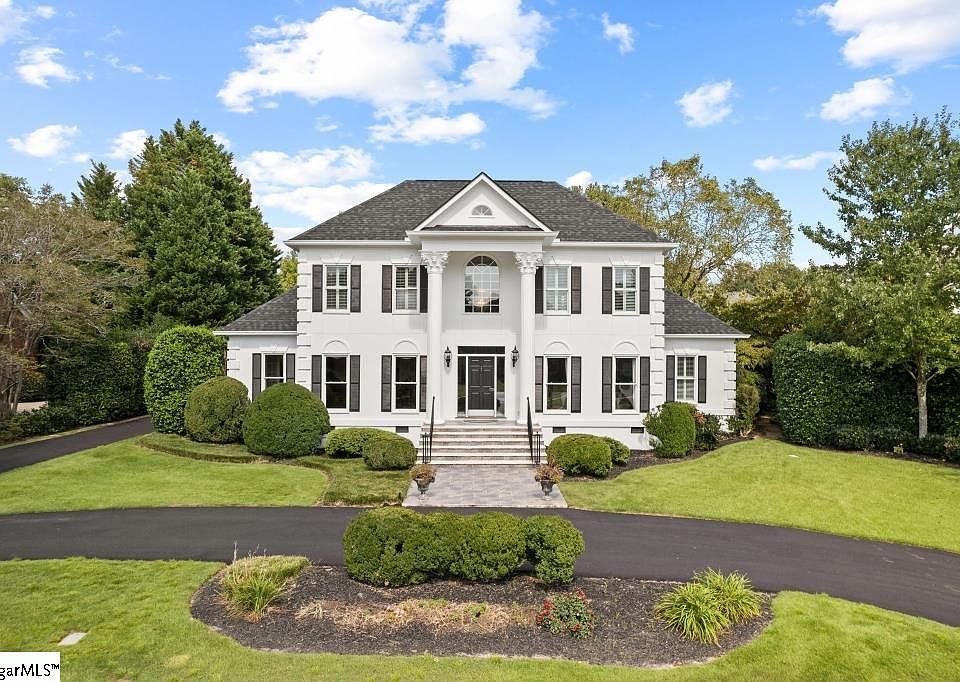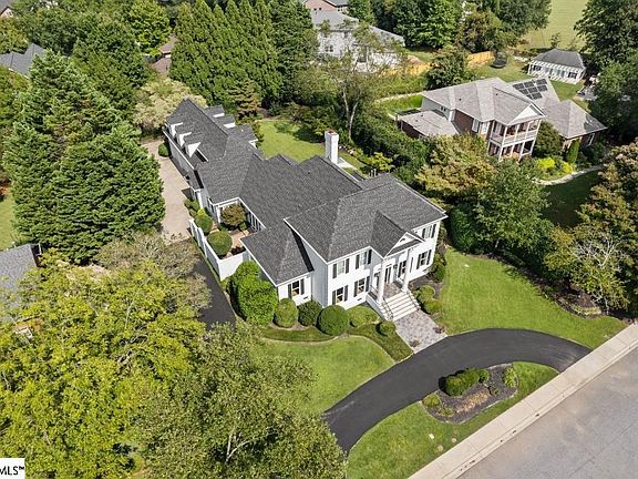Nestled at the end of a peaceful cul-de-sac just off E. Parkins Mill Road, this stunning 5 bedroom, 6.5 bath residence offers over 6,000 square feet of thoughtfully designed living space — including a private guest suite. Its prime location places you less than 10 minutes from Greenville’s thriving downtown, both major hospital campuses and just 2 minutes from I-85. Top-rated schools like JL Mann High School and St. Joseph's Catholic School are practically around the corner. The house was extensively renovated and expanded by Jon Peery Construction in 2002, increasing its size from 4,000 square feet to over 6,000 square feet. A grand double staircase in the foyer welcomes you into a light-filled interior, where formal and casual living spaces blend seamlessly. To the left and right of the foyer are a formal living room and a formal dining room, while straight ahead is the private master suite hallway. The open-concept family room flows effortlessly into the backyard—ideal for relaxing or entertaining outdoors. The chef’s kitchen is equipped with granite countertops, a center island with seating and a built-in office nook. It opens to a true breakfast area and an inviting sitting room with a fireplace overlooking a charming enclosed courtyard. Also on the main level is a versatile room with a full bath and closet—perfect as an additional bedroom or home office—located near a generous laundry room and access to an oversized three-car garage. Upstairs, you'll find three more bedrooms, each with its own full bath, a shared lounge area and a spacious walk-in attic for storage. The standout feature on this floor is the enormous bonus room, positioned for privacy at the end of a long hallway. With its own kitchenette, full bathroom and separate staircase leading back down, it’s perfect for use as an in-law suite, game room or guest retreat. Recent updates ensure peace of mind: bonus room HVAC replaced in 2022, new roof in 2023, main HVAC system updated in 2024, full master bath renovation in 2024, gutter system replaced in 2025 and the front driveway was resurfaced the same year.