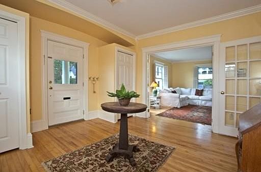 Craftsman style Highlands Colonial boasts two major expansions that created flexible living space, perfect for entertaining, while staying true to the architectural details of the style and turn of the century charm. Beautiful moldings, built-ins, French doors, fenestration and flooring enhance this home and sunlight bathes most spaces. Heat, insulation, roof, electrical and plumbing date to 1995. Gracious foyer with paired closets welcomes you; the living room centers around the wood burning fireplace surrounded by a wall of bookshelves. Reclaimed cabinetry from Melrose's Lincoln School adds charm to the flex space, currently used for dining, which could be a combination dining room/family room and opens to the kitchen boasting granite/butcher counters, SS appls and great prep space. Fourth bedroom with full bath could be used as a study or gathering space. 3 BRs, full bath & laundry on the 2nd. Enjoy BBQs on the deck! Highlands train, shops, the Fells and downtown Melrose all nearby.