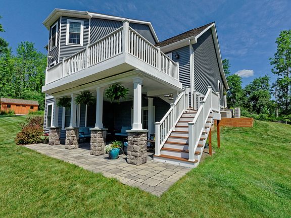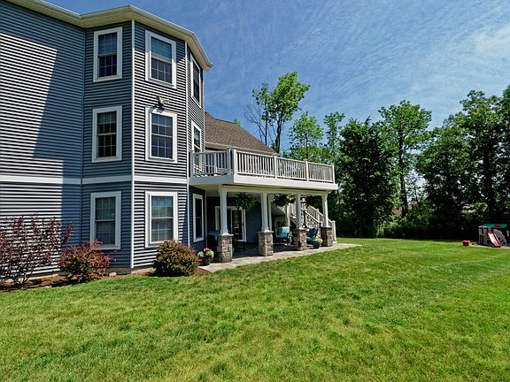 This bright, beautiful custom built home has all the features of luxury living. Presenting a spacious open floor plan, gleaming hardwood floors, living room w/gas fireplace, granite kitchen, large dining space leading to the deck w/retractable awning. Walkout basement offers a large family room and leads out to the covered, paver patio. Upstairs find the master suite offering a large walk-in closet, plus 3 additional bedrooms. Radiant heating, central vacuum, direct vent boiler among long list of amenities.