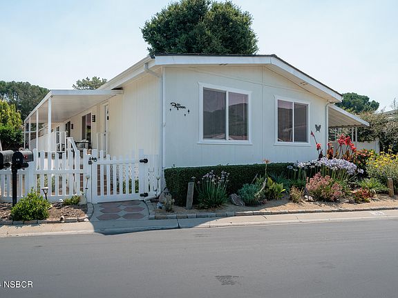 **No Property Taxes - Only Pay 75.00 Annual Registration Fee** This lovely Solvang home has been extremely well maintained and is drenched with natural sunlight. Some features are newer windows, new roof put on in 2024, and fully fenced and low maintenance yard which has been thoughtfully designed with two patio areas and a small grassy area. Home has 3 bedrooms, 2 baths, has nice curb appeal and tandem parking for two to three vehicles. The interior has been tastefully updated with bamboo, tile and LVP flooring; granite countertops in kitchen; new shower in primary bath; and, new tub/surround in 2nd bath. All appliances are included. The floorplan is ideal with the primary bedroom on one side and the other two rooms on the other end. Primary bedroom features two closets for plenty of storage. Just a short distance from downtown Solvang with lots of fun shops and eateries, down the street from a public golf course, and just outside the Park are great walking areas with lovely mountain views. In addition, the Park amenities include: club house, pool, bocce court, billiard room, and 9-hole pitch and putt golf course. Rancho Santa Ynez Estates is a Senior Park 55+ and park approval is required. Space rent for the new owner will be 1414 and includes water, trash and sewer.