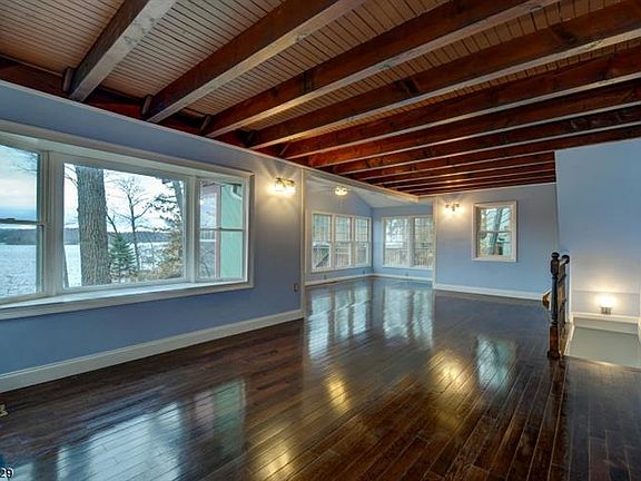 Lake Front completely renovated and move in ready. Sun filled open floor plan with hardwood floors through out. Kitchen with stainless steel appliances and quartz counters open to the living/dining room with stone fireplace, beamed ceiling and a wall of windows overlooking the lake. Master bedroom with vaulted ceiling and bay window to take in the view. Master bath with double sinks and skylight. The additional second floor bedroom also enjoys the same view. The finished walk out lower level has a slider to one of the homes two deck and a wood burning stove. Just pull your boat up your own dock. The multi large decks and open floor plan are perfect for all your entertaining! Truly a must see home.