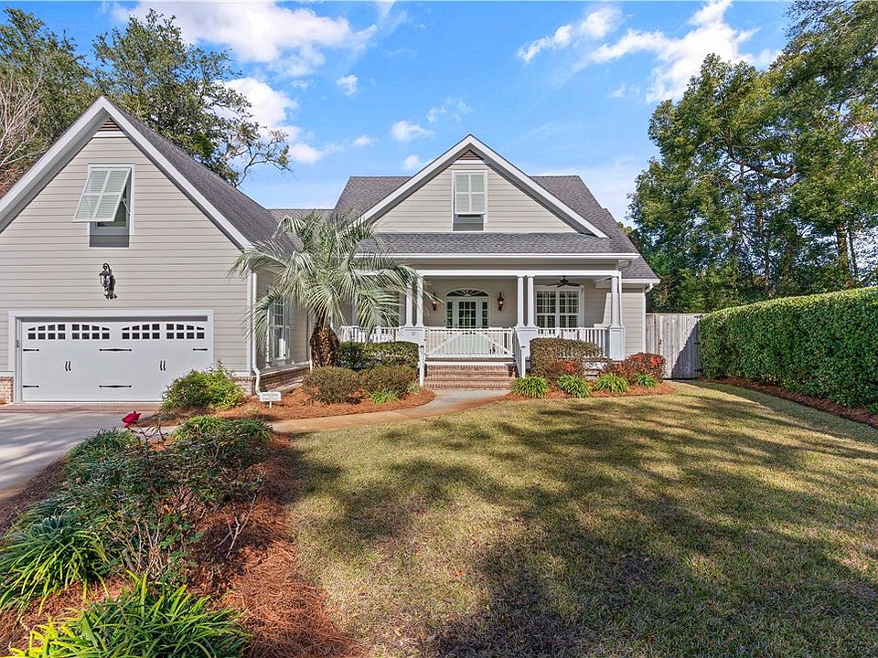 Charming 4 bedroom, 4.5 bath like-new home with front porch overlooking the park! The floor plan is ideal with everything on one main level (excluding one bedroom suite). The home is gracious, elegantly decorated and beachy with a large front porch inviting you inside. As you enter the spacious foyer, you will be faced with a large living room with a fireplace and a vaulted beadboard ceiling. Also adjacent the front door is a private dining space. The large kitchen opens to the breakfast bar and breakfast room. Wood flooring throughout living areas & primary suite. The primary suite is comprised of a spacious bedroom and spa-like bath with separate shower and tub. Suite also features a large walk-in closet. Also on the main level are two guest bedrooms with baths, a separate half bath for entertaining and a laundry room that enters directly off the garage. Upstairs there is a large bonus room with bath that serves as the 4th bedroom. Off the back of the home is a screened porch and patio. The two-car garage is generous in size. The yard is beautifully landscaped with large palms, 8 ft. privacy fence & well for yard irrigation. This home could make a great vacation rental, and with the large yard (.28 acres), you have plenty of room for a pool. Details were attended to throughout this property even down to the French drain in the driveway to keep water flowing as it should. Home is being sold furnished (excluding all art, living room rug, personal items and some kitchen items). Enjoy front porch sitting overlooking greenspace in front of this home, which will protect your view. Close to the Pier/Village, shopping, and restaurants but in a quiet neighborhood. Virtual tour available also check back for additional videos of the home. Check out the video of this beautiful home.