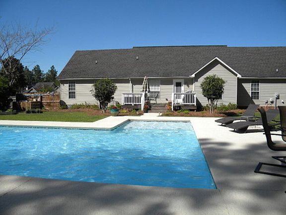 Location is everything and this home is located in the wonderful neighborhood of Wiregrass. Very nice family home with spacious great room and open floor plan. All rear facing windows look out over a new gunite pool that is large enough for all the children and their friends. Rocking chair front porch and a large deck on back for backyard entertaining and grilling area. . New professional landscaping. New privacy fence and a outside storage building. Entering the home you are greeted by a large foyer. Formal dining and breakfast room,great room with tall ceilings. Mudroom, office,pantry and laundry room close to the kitchen help to keep the family and household organized. Kitchen with solid surface counters and nice cabinets. All appliances stay. Master bedroom with his and her closets and treyed ceiling. Large master bath with double vanities and large tiled luxury shower. Two other bedrooms share a bath. Call to make an appointment today.