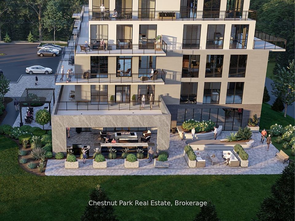 Presenting Edgewood Homes' latest offering, The Ridge at Highcrest, where modern, hassle-free living awaits. Suite 103, The Clover, exemplifies this with its open concept kitchen, living and dining room, ample storage, in-suite laundry, and a spacious bedroom with an en-suite bathroom and generous walk-in closet. The Clover features 721 SQFT, 1 bedroom, and 1 bathroom, with access to a private terrace and green space. Residents will also enjoy the amenities including a fitness centre, indoor and outdoor kitchen and dining areas, an outdoor terrace, and a resident's lounge. For a limited time, Edgewood Homes is offering early bird incentives to all buyers, which include a full suite of stainless steel appliances, washer and dryer, storage locker, one parking space, $0 assignment fees, and included development charges. The Ridge at Highcrest offers the ultimate blend of luxury, convenience, and the serenity of Muskoka living. Photos are artist's concepts.