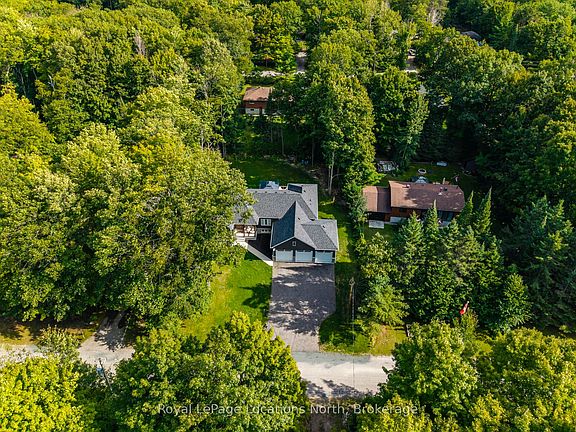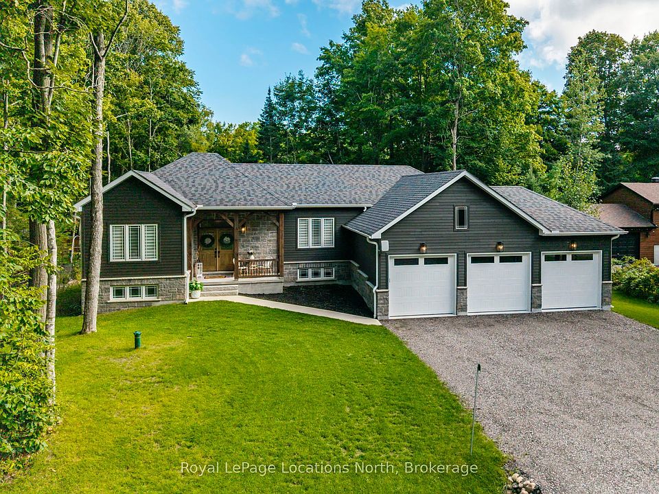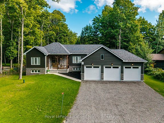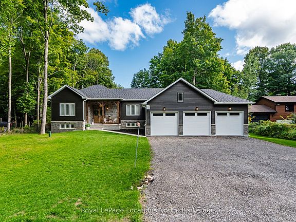 Welcome to Pinecone Ave, a quiet picturesque street in Tiny- where refined living meets the relaxed pace of life by Georgian Bay. This exceptional bungalow offers the perfect combination of modern craftsmanship, timeless style & practical design, making it an ideal choice for those seeking either a full-time residence or a peaceful retreat just minutes from the water. From the moment you step inside, you'll notice the attention to detail & quality finishes that set this home apart. Wide plank engineered hardwood floors extend across the open-concept main living space, creating a sense of warmth & continuity. At the heart of the home is a custom-designed kitchen featuring sleek quartz countertops, an oversized island with abundant storage & thoughtful design elements that make both everyday cooking & entertaining effortless. The kitchen seamlessly flows into the dining/living areas, where tall windows welcome natural light & a dramatic floor-to-ceiling fireplace serves as the inviting focal point of the room. Step outside to your tranquil backyard. The spacious deck is complemented by a large metal gazebo, offering the perfect spot for summer gatherings. The 3-car garage provides plenty of room for all your toys, while the full-height unfinished basement offers endless potential to design the space you've always imagined. & of course it's ICF construction. This property is more than just a house, it's a lifestyle. Located minutes from sandy beaches, scenic trails & peaceful parks, you'll have endless opportunities to enjoy the outdoors. Imagine days spent swimming, kayaking, or paddleboarding on the Bay, followed by evenings gathered around the fireplace or relaxing on the deck under the stars. With its seamless blend of modern comfort, low-maintenance living & proximity to everything that makes Tiny such a beloved community, this bungalow is a rare find. This coastal vibe bungalow is waiting for its next owner to enjoy all that Georgian Bay living has to offer!!
