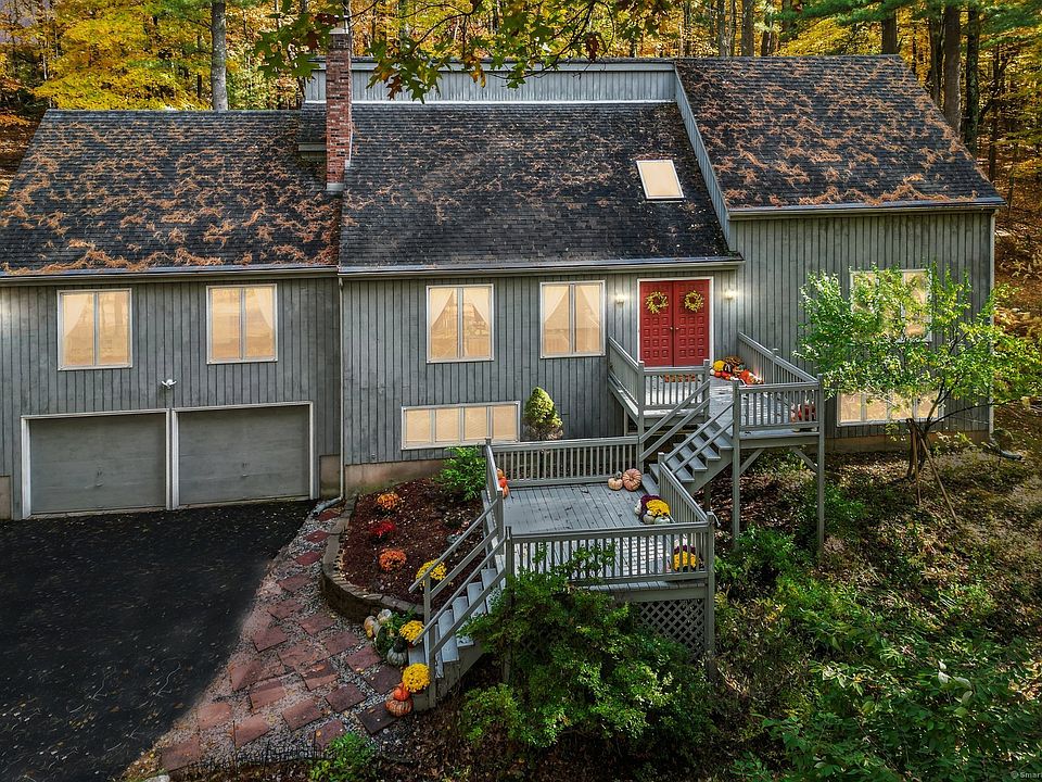 Nature-Lovers Retreat! Just one mile from town yet set back on a quiet cul-de-sac, this remarkable property offers complete privacy on 2.33 acres backing up to open space with access to hike to The Metacomet Trail and other local favorite spots. The home features five bedrooms and three and a half baths, with versatile living options throughout. The main floor provides exceptional flexibility with two bedrooms connected by a Jack-and-Jill bath and an attached laundry room-ideal for the in-laws, an au pair, or second primary suite. Sunlight fills the entryway and the entire first floor, creating a warm and inviting atmosphere. Upstairs, the primary suite includes a private balcony, along with two additional bedrooms and a full bath. One of the bedrooms offers access to unfinished attic space through the closet, already insulated and ready to become a gym, office, meditation room, or expansive walk-in closet. The unfinished basement, with high ceilings and large windows, walks out to the garage and provides another opportunity to create an in-law suite or additional living area. Perfectly situated in the scenic hills of Simsbury, this home offers both tranquility and convenience, with easy access to Bradley International Airport, Hartford, and Springfield. Don't miss the chance to make this incredible property your own. FYI: THIS IS A FIVE BEDROOM HOUSE. TOWN CARD REFLECTS 4 BEDS, BUT IT INCORRECT. Enjoy the Simsbury School System - Consistently Ranked Top 5 for School Systems in Hartford Area by Niche.com. Central Air (2020); 1500 gal. Septic Tank (2020).