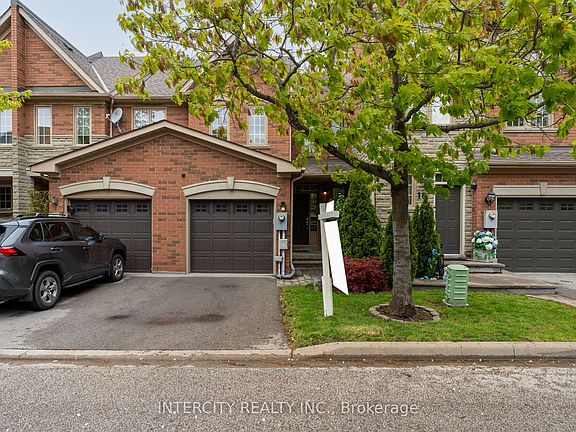 Welcome to Eden Oak Townhomes ! This beautifully maintained townhouse offers updates and stylish decor throughout. Enjoy elegant stained parquet floors on the main level and upper hallway, along with a matching stained staircase. The upgraded kitchen features modern cabinetry and a mirrored backsplash, providing both function and flair. The home offers ample storage and fully landscaped front and back yards, perfect for relaxing or entertaining. The partially finished basement includes a bedroom with closet, laundry area, generous storage space, and a rough-in for a 3-piece bath-ready for your personal touch. Conveniently located close to parks, school , and shopping, with easy access to Highway 400 and 407. This home truly shows to perfection !