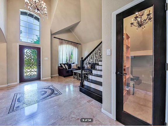 Granite countertopsLarge walk-in closetWine grottoVaulted ceilingsWrought iron staircaseDark cabinetry