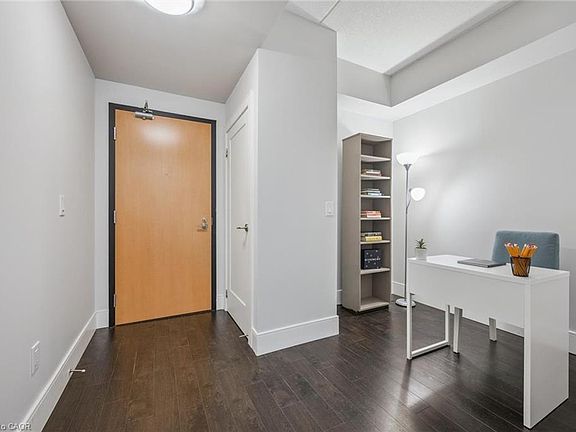 Welcome to this stylish 2-bedroom, 2-bathroom plus den condo, perfectly located between Uptown Waterloo and Downtown Kitchener. Offering880 sq. ft. of well-designed living space, this bright and airy unit features floor-to-ceiling windows and soaring 9-foot ceilings that fill the home with natural light. The open-concept layout provides a spacious living area, ideal for both relaxing and entertaining. The modern kitchen boasts sleek finishes and ample storage, while the versatile den offers the perfect spot for a home office or reading nook. The primary bedroom includes a private ensuite, and the second bedroom and full bathroom are perfect for guests or family. Enjoy the convenience of condo living and being just minutes from vibrant shops, restaurants, public transit, and scenic trails—all from a contemporary building with excellent amenities.