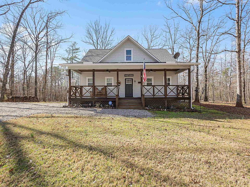 This charming Pickwick Cottage is located on a private 1.21 acre lot. The main level includes an open floor plan, master suite, laundry & 1/2 bath. A fireplace w/ shiplap, hardwood & tile floors add elegance, while the kitchen dazzles with quartz countertops & stainless appliances. Upstairs you will find 2 guest rooms & a full bath. Enjoy the large covered front porch & a covered rear porch w/ screened in area for relaxation. Its the perfect blend of comfort & serenity. Sold mostly furnished.
