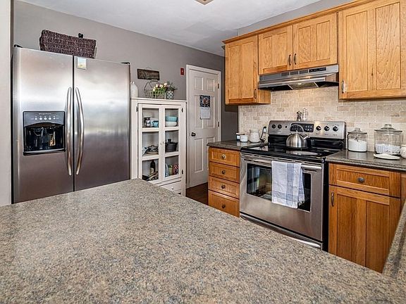 Nicely finished and meticulously maintained 4 BR home that's move-in ready! Eat-in kitchen with hickory cabinets, stainless steel appliances, and peninsula. Two bedrooms on the first floor and two upstairs. Full bath on 1st floor was renovated 7 years ago. Basement is partially finished for extra space. Basement walks out to partially fenced backyard, Mudroom addition in 2008 with bamboo floors, heated by a pellet stove, and leading to a deck (2019) in the back. Beautiful stone hardscaping in the backyard with retaining walls, great area for a fire pit and gardens. Stone stairs lead back up to the mudroom. Roof replaced in 2008. Furnace is 6 years old. Nice yard with perennial gardens. Town water! Passing Title V. Dudley-Charlton Regional School system.