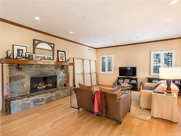 One story charmer serenely sits behind a circular drive on a tranquil cul de sac amid the majestic natural rustic beauty of Bell Canyon. Highlights include granite counter tops in Center Island Kitchen, gleaming wood floors, custom fireplace in Great Room, bay window in Formal Dining Room, recessed lighting, crown moldings and plantation shutters. Generous Master Suite offers separate bathroom and fireplace along with a separate office which could be used as maids room. Rear yard has amazing viewing vistas along with a separate access to a lower level which could easily accommodate equestrian facilities, grapes or RV.