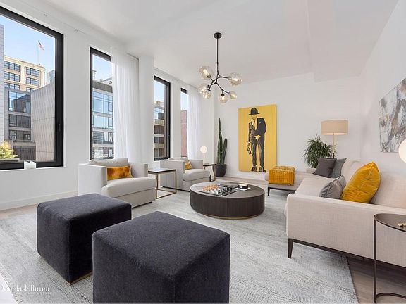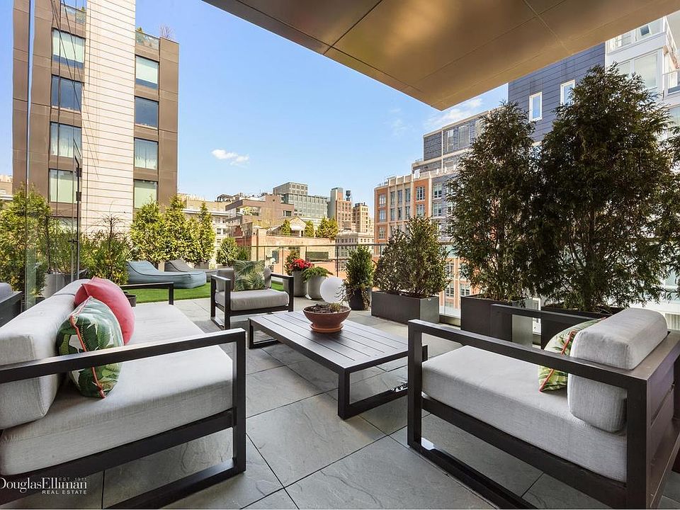 This magnificent duplex penthouse has been meticulously designed and constructed to create a chic, sexy and dramatic home. ODA-Architecture has conceived a serene atmosphere suitable for living and entertaining, consisting of 3-bedrooms, 3.5 bathrooms and 2 stunning irrigated terraces. The perfect setup to enjoy the rare experience of indoor/outdoor living, this dramatic way of life provides a luxurious lifestyle seldom experienced in New York City. This vast three bedroom, three and a half home allows for a grand lifestyle with oversized living spaces and great light from the floor-to-ceiling windows. The humongous living/dining areas flow naturally to an open professional chef's kitchen, consisting of top-of-the-line appliances and fixtures from Sub-Zero, Miele, and Dacro. The Italian-made Poliform kitchen features walnut cabinets with back-painted glass and stainless steel countertops with integrated Foster sink and gas cooktop. Downstairs you will find three bedroom suites, each with its own exclusive en-suite bath and spacious closets. The master features a fantastic five-fixture bath with deep soaking tub and herringbone patterned marble heated floors. Every detail of this home has been thoughtfully conceived from the gracious layout and private outdoor spaces to the finer details including solid wood doors with polished black nickel hardware that are tastefully placed throughout this magnificent residence. 15 Renwick is a 31-unit building, designed by ODA-Architecture, featuring a unique mix of 2- and 3-bedroom residences, three townhomes with private yards and four penthouse duplexes. Located on a single-block street, one of only a handful in the city, 15 Renwick offers a tranquil sanctuary isolated from the city's fervor. The building's design, both handsome and bespoke, is inspired by its dynamic location. Hudson Square, once known as a historic printing district and a creative haven for artists, celebrates both artistry and industry. Each home features wide-plank walnut flooring, 8-foot windows, Waterworks fixtures, Bosch washer/dryers, Creston Home Automation Systems, HVAC plus much more. Amenities include optional private parking, a fitness center and boxing gym, 24-hour doorman, roof deck, zen garden designed by the renowned HM White Site Architects and on-site storage.