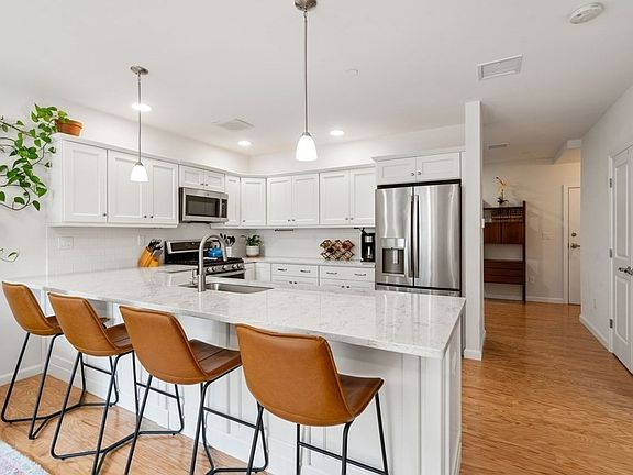 Wonderful opportunity at the Copperworks Condominiums, one of Canton’s premier residential communities with a rich history. Packed with natural light, this direct entry 1 bed, 1 bath plus den turnkey unit offers contemporary condo finishes with many perks including private patio and deeded garage. The open concept chef’s kitchen features an oversized breakfast bar, quartz countertops, stainless appliances, gas cooking and pantry. The king-sized suite offers generous storage with a large walk-in closet and modern bathroom with double vanity. The bonus den adds great flexibility to the layout working perfectly as a home office, guest space or nursery. Enjoy entertaining or relaxing on the private patio just outside the living room. Take advantage of the many community amenities including swimming pool, clubhouse with conference room, roof deck, many walking paths and an on-site restaurant. Conveniently located to downtown Canton, I-95 and Canton Junction train station.