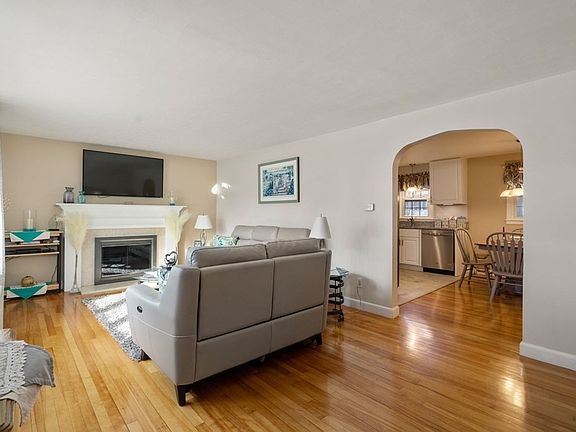 Charming, recently renovated ranch nestled in an ideal location! Conveniently situated in a desirable neighborhood near the heart of town with easy access to major highways, schools, shopping, and more. The front door opens to a sunny living room with hardwood floors that run throughout, a beautiful fireplace, and a bay window. The wide arched entrance leads you to the dining area and recently updated kitchen. Down the hall, there is a full bath with a combination ceiling vent/heat fan and two comfortable bedrooms. An unheated breezeway leads to an attached one-car garage and a landscaped, level backyard with a patio. Full basement for storage and future finishing potential, complete with a sump pump and updated mechanicals. Home comes equipped with operational ADT security cameras and alarm system. Pride of ownership is evident throughout. Seize the opportunity on this adorable move-in ready home, with endless potential for your personal touch! OFFER DEADLINE: TUESDAY, JAN 23RD @ 10AM
