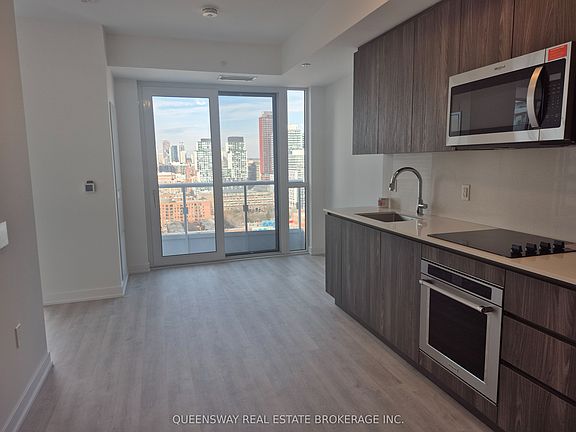 Brand New, Gorgeous, Studio Apartment in the Heart of the Toronto. Laminate Throughout, Very Bright, Spacious, Open Concept Floor Plan. Modern Kitchen Finishes with B/I Appliances. Combined Dining and Kitchen Area with Walk- Out to Balcony with City Views. Living Area (Bedroom) with Double Mirrored Closet. Carpet Free, Move-in Ready. Perfect Waterfront Location. Just Steps Away From Sugar Beach, St. Lawrence Market , Scotia Bank Arena, George Brown, Shopping , Restaurants, Public Transportation , Parks. If You Are Someone Looking For the Best of Toronto Living, this Gorgeous Studio Offers Exceptional Rental Value in an Unbeatable Location.