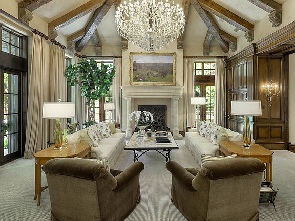 Rising behind a circle drive and flanked by Mediterranean cypress trees, 15 Robledo Drive evokes the timeless romance of a European villa. Within the gates of Los Arboles, Preston Hollow’s most exclusive enclave, the estate reveals itself like a scene from the Tuscan countryside — limestone cladding, ironwork arches, and a harmony of sunlit spaces. Originally designed by Robert Trown and recently updated by J.R. Cattington Interiors, the home balances Old World character with modern livability. Reclaimed oak floors and hand-hewn beams add texture, while arched openings and generous ceiling heights guide you from one light-filled room to the next. A richly paneled library, formal living and dining spaces, and a butler’s pantry lend themselves equally to both intimate moments and grand entertaining. The kitchen shines with custom millwork and veined stone, flowing into a cheerful breakfast nook, relaxed family lounge, and study. Across the home, eight fireplaces weave a unifying thread of warmth and elegance. The main-level primary suite feels like a private wing, complete with dual baths and boutique-style closets. Upstairs, two guest suites rival luxury hotels, each with its own fireplace and balcony. A fitness room, bonus space, and ample storage complete the second floor. Outdoors, the estate unfolds with equal composition and care: a waterfall-fed pool, lush gardens, pavilion, putting green, and a loggia with fireplace and kitchen — coming together to make everyday living feel exceptional. Control4 home automation, dual garages, and a private elevator ensure the home lives as effortlessly as it looks. 15 Robledo Drive offers a rarity in today's market: an updated home that preserves the soul of a classic estate.