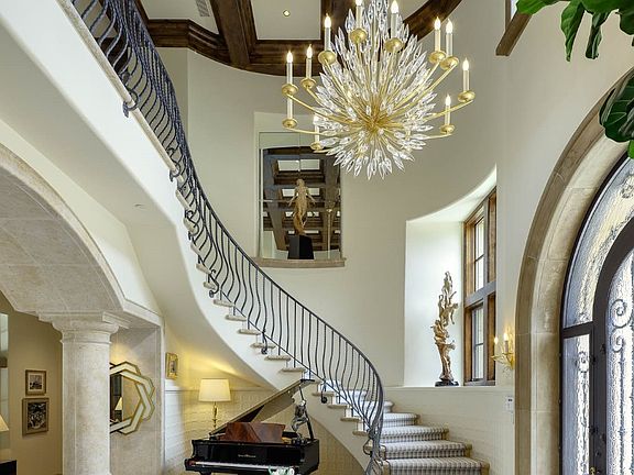 Fitness roomLimestone claddingMediterranean cypress treesRichly paneled libraryGenerous ceiling heightsWaterfall-fed poolBonus space