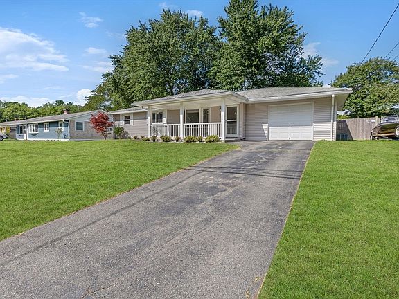 Welcome to 15 Roger Rd, Holbrook, MA! This delightful 2-bedroom, 1-bath Campanelli Ranch Home spans 1,008 square feet and is designed for comfortable living. The spacious primary bedroom features a generous walk-in closet, offering plenty of storage space. The updated kitchen is a highlight, featuring sleek stainless steel appliances, a large center island with an additional sink, perfect for meal prep or casual dining. The open floor plan extends to a cozy living area, ideal for relaxation. Step through the slider to your private deck, overlooking a fenced-in backyard—perfect for outdoor entertaining or enjoying a peaceful evening. The one-car heated garage provides added convenience, while the inviting front porch adds a touch of charm to this lovely home. Whether you're starting out or downsizing, this home offers a perfect blend of modern updates and classic comfort.