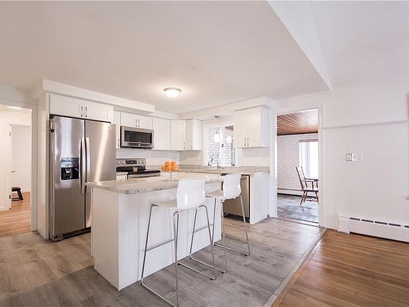 Newly Renovated Ranch in Elmhurst, 3 Bed, 1 Bath, Features Cathedral Ceilings in Living Area with a Stone Two-sided Fireplace, Gleaming Hardwoods, An Eat-In Kitchen with Granite Countertops and Stainless Appliances, Additional Living Area in Basement, Plenty of Storage, Close to PC & RIC, Downtown, Restaurants, Shopping & All Major Highways