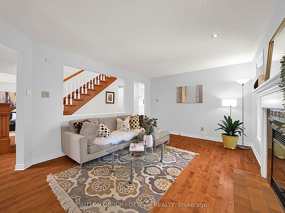 Located in the HIGHLY DESIRABLE Centrepointe community on a QUIET crescent, this BEAUTIFUL home delivers curb appeal in spades with a MODERN garage door, NEW front door, lush PERENNIAL landscaping, and a welcoming SOLAR-LIT pathway. Inside, the BRIGHT foyer with OPEN staircase and SKYLIGHT sets the tone, leading to a FORMAL living and dining room, and a SPACIOUS kitchen with GRANITE counters, STAINLESS STEEL appliances, and cabinets with crown moulding. The COZY family room with fireplace is perfect for relaxing, while the PRIVATE backyard offers COMPOSITE steps, a LARGE patio for BBQs, and plenty of GREEN space to play or garden. Upstairs, the SOUTH-FACING primary bedroom includes a sitting area and a 5PC ensuite with NEWER shower and vanity. The FINISHED basement adds even more living space plus a MASSIVE utility room ideal for STORAGE, a WORKSHOP, or even an EXTRA BEDROOM. Truly the PERFECT home for family living and entertaining! Walk to library, parks, schools and LRT. Close to Algonquin College, College Square Plaza, trails, and minutes to HWY417. Roof 2008, Furnace 2011, Most windows 2014, Stove 2016, HWT (owned) 2018, Dishwasher 2018, Fridge 2019, Main door 2022, Heat Pump 2023, Attic insulation 2015, Driveway 2023, Garage door 2018