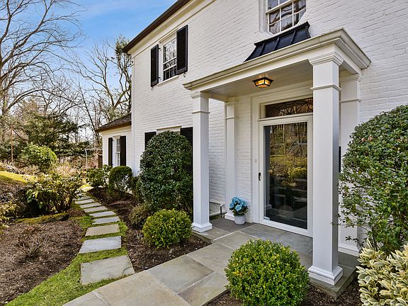 Your own private oasis. On almost 1/2 acre, this stunning center hall Colonial sits on a secluded cul-de-sac. Enter the lovely foyer to a sun drenched living room, complete with wood burning fireplace. Continue on to a bright sun room which opens to a slate patio with awning. Picture the parties in your spacious dining room. The chef's kitchen with top of the line appliances and butchers block and stainless counters is open to the sun filled family room with fantastic built-ins. Separate mud room entrance with fabulous storage. There is a spacious first floor bedroom with an en-suite full bath. The charming powder room finishes the first floor. On the second floor, the large master has an en-suite bath,walk in closets and a terrace. There are three other large bedrooms, one currently used as an office. A beautiful hall bath completes the second floor. The walk out lower level has over 600 square feet not included, with exercise and playroom/den, laundry and a two car attached garage.