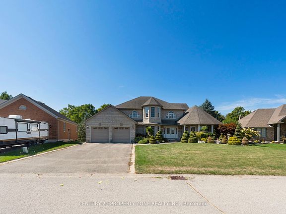 Welcome to 15 Royal York Court, a stunning two-storey home in the desirable town of St. George! Situated on an impressive 0.44-acre lot and offering over 4,500 sq ft of finished living space, this home perfectly blends elegance, comfort, and functionality. Step into a grand entrance with soaring vaulted ceilings that lead to a spacious front sitting room and formal dining area with a cozy gas fireplace ideal for entertaining. The modern eat-in kitchen with a large island flows seamlessly into a warm and inviting family room, also featuring a fireplace, while a dedicated office, powder room, and main floor laundry add everyday convenience. Upstairs, the primary retreat boasts its own fireplace, walk-in closet, and a spa-like ensuite, complemented by two additional bedrooms and a full bath. The finished walkout basement is designed for versatility, offering two dens, a large rec room with fireplace, and a full bathroom. Outside, enjoy your private backyard oasis the perfect setting for relaxation and gatherings. A rare opportunity to own a truly exceptional property in a prime location!