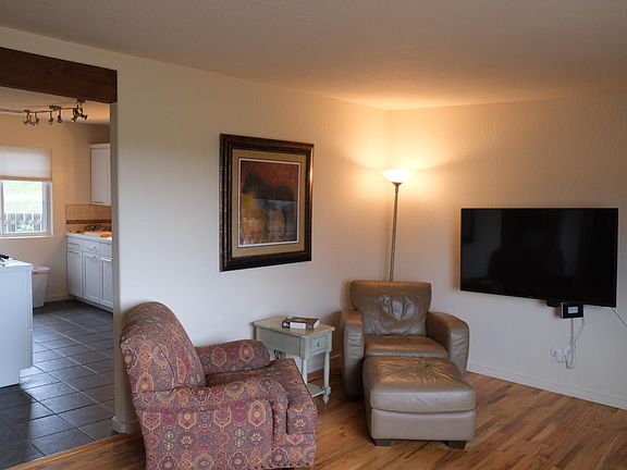 Located on just under 1.5 acres, this lovely home was professionally remodeled and updated. Two spacious living areas with unobstructed mountain views. Modern kitchen has updated cabinets, light fixtures, breakfast bar, wine cooler and stainless gas stove and dishwasher. Three large bedrooms. Additional features of home include water softener system with reverse osmosis filters, huge butler pantry and mud room. Finished 2.5 car garage. Fenced backyard with covered deck. Home is in move-in condition. seller will provide Buyer with Flood Elevation Certificate showing improvements are not in the flood plain.