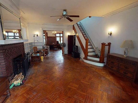 Tudor style home on a beautiful tree-lined historic block in Prospect Lefferts Garden. Lovingly cared for by the same family for generations, this single family home spanning 4 floors features 4 bedrooms, 3 bathrooms, an office and full height windowed basement with it's own entrance. Gorgeous untouched woodwork and original stained glass windows. The formal dining room is separated by pocket doors. Other features include original doors, a decorative fireplace and hardwood floors. The bedrooms are generous in size and the home also has private outside space.