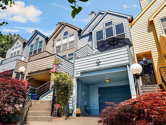 SOLD! This John's Landing row house has one of the best views in Portland! It offers close proximity to downtown and all the south water front has to offer, two master suites, and a two car tandem garage and enough space for a third car in the driveway. The great room/kitchen has big windows and a door right to your deck. The perfect home for entertaining. Watch the sunrise behind Mt. Hood and fireworks on the 4th of July. Welcome home!
