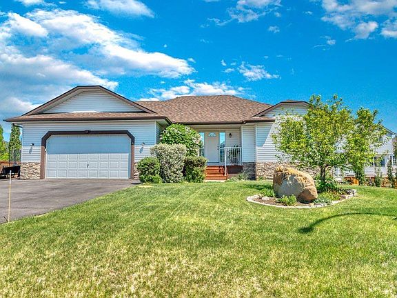 Homes this special don’t hit the market very often. This fully finished walk out bungalow nestled on the most idyllic lot on Langdon’s popular NE side could be yours just in time for summer. At just over a 1/4 acre this property is abundant with mature trees, bushes, plants and decorative garden areas. Situated on a quiet cul-de-sac the home is set back to provide an expansive front lawn as well as an oversized driveway with plenty of room for multiple cars and your RV or boat. A charming covered front porch is the perfect place to sip a morning coffee and wait for the hummingbirds to flit by. As you step into the spacious front foyer you’ll be wowed by how bright, light and open space the main living area ... thanks to the vaulted ceilings with skylights. A cozy wood fireplace is flanked by 2 windows with decorative glass creating a unique and charming feel. A nice sized dining area is just off of the living room with sliding doors to easily access your terrific back deck that stretches the entire width of the home. A raised breakfast bar is between the kitchen and dining areas. This layout is ideal for those who like some separation between their living space and kitchen without it being completely closed off. The laundry room / mudroom is next to the kitchen and leads to the garage. You’ll find 2 really large bedrooms on this main level including the primary with 4 pc ensuite, walk in closet and direct access to the back deck. A second 4 pc bath is ideally located next to the other bedroom. Newer luxury vinyl plank flooring throughout the entire main floor is durable and provides a fresh, clean, cohesive feel. The fully finished lower level offers 9 foot tall ceilings, 2 more really large bedrooms each with its own walk in closet and a 4 piece bath. . They share the full bath. The large recreation area is perfect for hanging out watching movies as a family or entertaining friends. Best of all you can step directly into your beautiful backyard where you’ll find a covered paving stone patio, raised garden beds and tons of trees and plants. All of the hard work creating this lush outdoor oasis has been done now you can spend your summers just enjoying it. Last but not least you can enjoy the oversized attached 2 car garage that is insulated, drywalled and heated with 11 foot ceilings and 8 foot doors. . Plus it comes with ample storage shelves, 2 work benches, a sink with hot and cold water and a man door to the side yard. If you’re ready to get away from the city why not come and see what the charming hamlet of Langdon has to offer? Great schools, unique and amazing local businesses, plus a friendly small town feel all within a short commute to Calgary. Your’e going to love it here! With a great walk out this home would be suitable for a multi generational family.