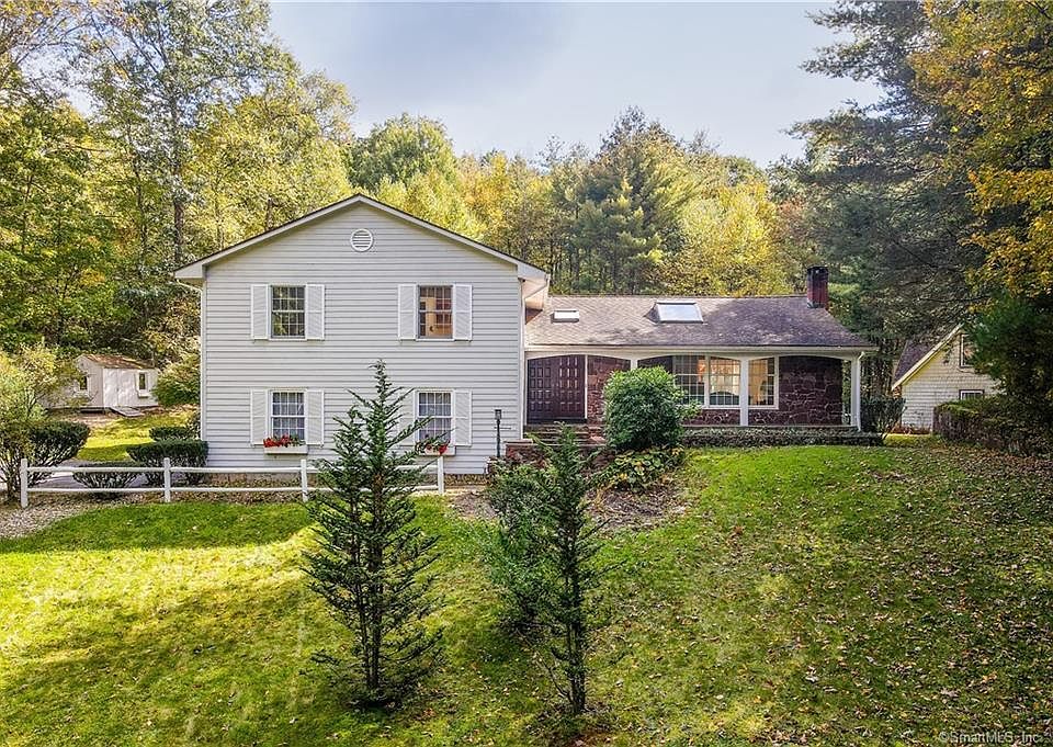 Gem on the end! Incredible opportunity to obtain a private residence nestled by protected land at the end of a cul-de-sac in the desirable and enchanting West Simsbury location. Artfully built in 1969 and situated on over an acre of both cleared and wooded land, this 2,344 sqft home features 4 bedrooms, 2 full bathrooms, a half bathroom, a spacious living room, a family room with fireplace, a kitchen with dining area, a large finished basement, 2 car attached garage, and a glorious sunroom with a hot tub. Skylights and natural lighting throughout. Central heating and cooling! Structures outside the main home consist of a storage shed, a treehouse, and a small 2 story heated building currently being used as a creative studio. As for the location, the property is located incredibly close to hiking trails, the Tootin' Hills School, and within miles of farm stands, shops, restaurants, and cafés. The home is turnkey and ready for a new owner! There is no lockbox or e-key. Open houses will take place on Sunday 11/5 12:00pm-2:00pm and Sunday 11/12 from 11:00am-1:00pm. Also, the seller is firm on price and will not consider any offers under asking.