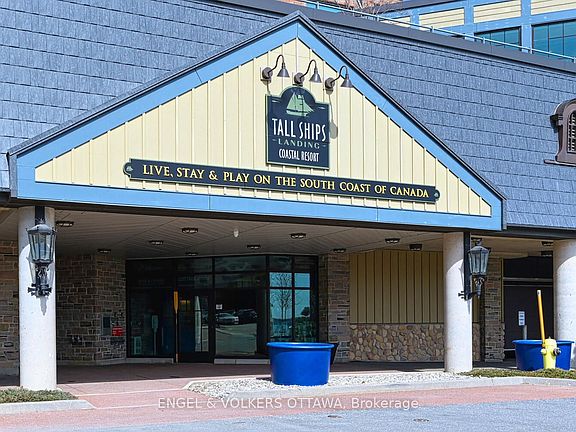 Rarely offered for sale this northwest facing Tops'l Suite offers outstanding views of the Brockville portion of the 1000 Islands as well as the Brockville skyline. You and your guests will never tire of the views which change seasonally. This suite offers a beautifully portioned great room style anchored by a gas fireplace. The tailored kitchen cabinetry is in classic white with granite countertops. The huge window over the sink lets you keep an eye on the comings and goings of the city below. The spacious primary suite accommodates a king size suite with adjacent 5 piece ensuite and huge walk in closet. The secondary bedroom on the opposite side of the condo provides total privacy for visiting family or guests or makes an excellent office. Wide plank hardwood flooring throughout adds to the sense of space ceramic flooring in the baths, of course. The building amenities are second to none .... huge indoor pool, indoor and outdoor hot tubs, nicely equipped gym, reception rooms, games room, catering kitchen. One indoor parking space is equipped with an EV charger. A must see!!!