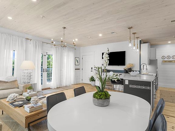 Welcome to 15F at The Flats in Rosemary Beach - a beautifully updated 3rd-floor condo offering timeless coastal charm and comfort. Overlooking scenic St. Augustine Green, this residence features a spacious open living and dining area that opens to a private balcony. The fully renovated kitchen includes Thor stainless steel appliances and custom cabinetry. The Primary Suite was recently tastefully updated and offers a king bed, walk-in closet, and ensuite bath with a walk-in shower and soaking tub. A second guest suite features a custom bunk system with queen beds above and below. Offered fully furnished with a small list of exclusions. Just a short walk to the Rosemary Beach Owners' Pool, Club Room, and Amphitheater. Residents enjoy access to four community pools, a fitness center, tennis courts, a racquet club, private beach access, and some of 30A's finest shopping, dining, and events - all within walking distance. Buyer to verify all information and dimensions.