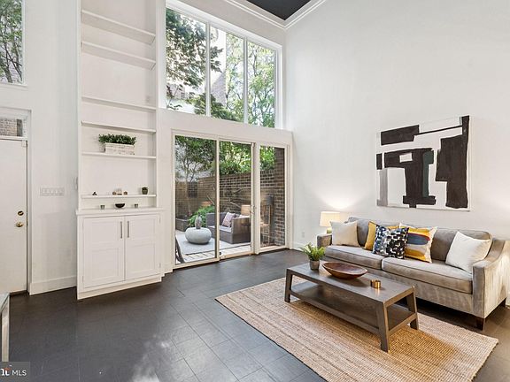 Gorgeous, gracious, & generous, space awaits you in this tranquil garden courtyard 2 BR, 2 bath home at St James Court. Located on the NW side of the courtyard, and just off of Belgian-block lined St. James street, enter into the large, decked patio space, perfect for gardening, entertaining or relaxing. The first floor has amazing double height ceilings & windows for a sun-filled, airy space balanced by a dark painted ceiling and parquet flooring. Custom built-in offers excellent, lighted display space. The open living, dining, and kitchen floor plan works exceptionally well for entertaining. A state of the art kitchen offers abundant maple cabinetry, stone counters w/ double sink and a premium Wolf & SubZero commercial-grade appliance suite for the most discerning home chef. A contemporary, etched glass, sliding barn door encloses the main level bedroom suite. Two huge walk-in closets connect together for excellent clothing storage. A full bath which adjoins the bedroom and serves the main level was recently renovated with Kohler pedestal sink, mirrored sconce, marble floors, and jetted tub, all of which are wrapped in classic white subway tiles. One flight of stairs leads to the cozy, carpeted second floor which overlooks the living room. There is washer/dryer, mechanicals and another large, lovely marble and subway tiled bathroom with frameless glass shower and large storage vanity. The second, larger bedroom is just beyond offering huge closets with custom built-in organization. Steps from Washington Square, the National Independence parks and historic Philadelphia, PSC Gym, easy walk to the Ritz movie theaters and tons of fine Philadelphia restaurants, Zahav, Talulah s Garden, Farmacia, Cafe Freida and so many more. In the heart of Historic Philadelphia tucked away in your private oasis, come make Saint James Court your home today!