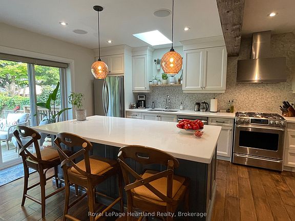 Welcome to Cliffcrest a highly sought-after neighbourhood known for its family-friendly amenities, and proximity to the beach. Steps from Fairmount PS & St. Agatha's, this charming 4-bed, 2.5-bath detached home sits proudly at one of the highest points on the street, filling the interiors w/ beautiful natural light and an elevated sense of space. Originally a classic 50s bungalow, this now 1.5 storey 1,600 sq ft home was thoughtfully renovated in 2015 and balances open gathering areas with quiet nooks. The main floor welcomes you with a tiled entry, warm engineered hardwood, and an inviting layout. At the heart of the home, the kitchen shines with Caesarstone counters, a generous 4' x 7' island, and skylight, w/ nearby dining and living area --perfect for family meals, homework, & entertaining. From here, stairs lead to a flex room above the garage, perfect as the 4th bedroom, playroom, or home office. Off the kitchen, a wide 10' window/patio door combo opens to a deck (2021) overlooking a fenced yard w/ cedar raised beds and plenty of space to play or garden in privacy. On the main floor are two comfortable bedrooms and a full 4-pc bath with heated floors. Upstairs, a versatile landing creates a cozy lounge or TV area before entering the Primary Suite. This retreat features a 2-pc ensuite, W/I closet, and two powered skylights that flood the room with light. The 900 sq. ft. basement offers even more possibilities. With a 4-pc bath already in place, its a blank slate for an income-producing suite, multi-gen living, or a spacious rec room. Roof, furnace, A/C, gas stove, tankless water system (all 2015), fridge, dishwasher, and washer/dryer (all 2023). This is a rare opportunity to own a sun-filled home on a larger Lot in one of the Bluffs most desirable pockets. With the Waterfront Trail, parks, public transit, and all the conveniences a family could want just minutes away, this property offers both lifestyle and value. Don't miss your chance!!
