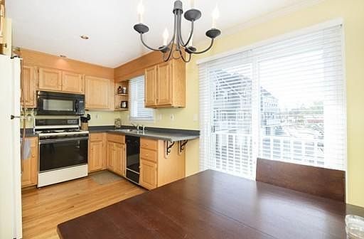 Location, location location! Two bedroom townhouse conveniently located in Natick Center. Train, shops and restaurants within short walking distance. Eat in kitchen with balcony access, large living room/DR with gleaming hardwood floors. Half bath on first level. Two bedrooms and bath on carpeted second level. Third floor walk up bonus room .Laundry room in basement. One car under garage. Nice, sunny unit in immaculate condition. Available September 1.