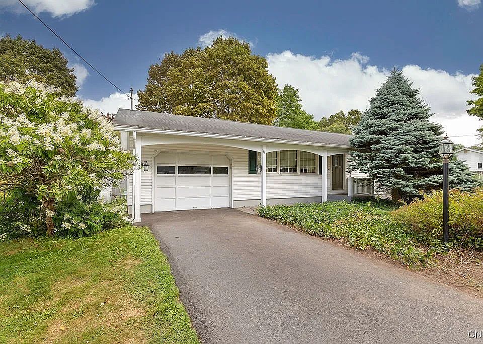 Welcome to this charming 3-bedroom, 2 bath single family home, nestled on a spacious fully fenced 1/2 acre lot. This home features granite counters, hardwood floors and fresh paints throughout the house (in progress). There is a separate space for dining area. There is a one car garage and a full basement with ample storage space or a potential activity area/ man-cave. There is a backup propane generator with $380 worth of propane included. Located in the desirable North Syracuse School district, this home provides perfect blend of tranquility and convenience, with easy access to freeways.