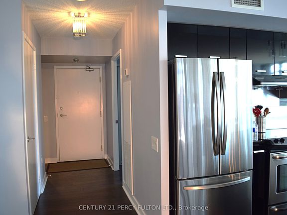 One Of The Largest Two Bedroom Plus Den In The Building. Luxury Corner suite close to 1200 sq ft +large South Facing Balcony and clear view on the east side. Spacious, Open concept and functional layout, large den can be used as third bedroom or office or family room. Unit close to elevator and chute and exit stairway. Floor To Ceiling Windows. Recently painted, upgraded closet doors w/organizers, His and Hers closet in the Primary bedroom. Newer Fridge, Cabinet doors replaced in 2021- Modern light fixtures, custom curtains. Steps To Subway, Hospital, shopping, IKEA, Canadian Tire, Banks etc- Easy Access To Hwy 401& 404. 24 Hrs Concierge. Some building amenities include Party Room W/Patio BBQ Area, Games Room, kids playroom, indoor pool, gym and more. One Parking near elevator & One Locker included. Award winning management.