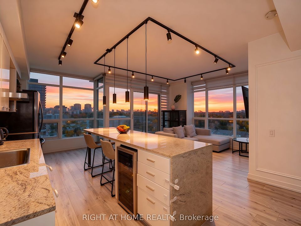Spectacular Penthouse Luxury Living at Its Finest - Fully Furnished Corner Unit! Welcome to the exclusive Penthouse collection at Concord Park Place - a stunning Fully Furnished 2 Bedroom + Den corner unit offering 1,000 sq ft of beautifully upgraded living space plus a private balcony with unobstructed East, West, and North views. This rare Penthouse features floor-to-ceiling windows on multiple sides, flooding the home with natural light and showcasing breathtaking sunrises, sunsets, and panoramic city vistas. Completely renovated with high-end finishes, this residence features a modern open-concept layout, premium flooring, and designer lighting throughout. The elegant kitchen includes a Samsung stainless-steel fridge, Bosch dishwasher, and sleek cabinetry. The living area comes complete with a 65" Smart TV and stylish furnishings - truly move-in ready. Both bedrooms are spacious and offer exceptional privacy and views. The versatile den is ideal for a home office or study area. A Samsung washer/dryer provides maximum convenience. Enjoy resort-style amenities including an indoor pool, hot tub, gym, party room, guest suites, BBQ area and more. Ideally located with quick access to Hwy 401/404, Sheppard Subway, GO Transit, Bayview Village, and Fairview Mall. A rare fully furnished Penthouse corner unit - offering luxury, space, and views that elevate your everyday living.