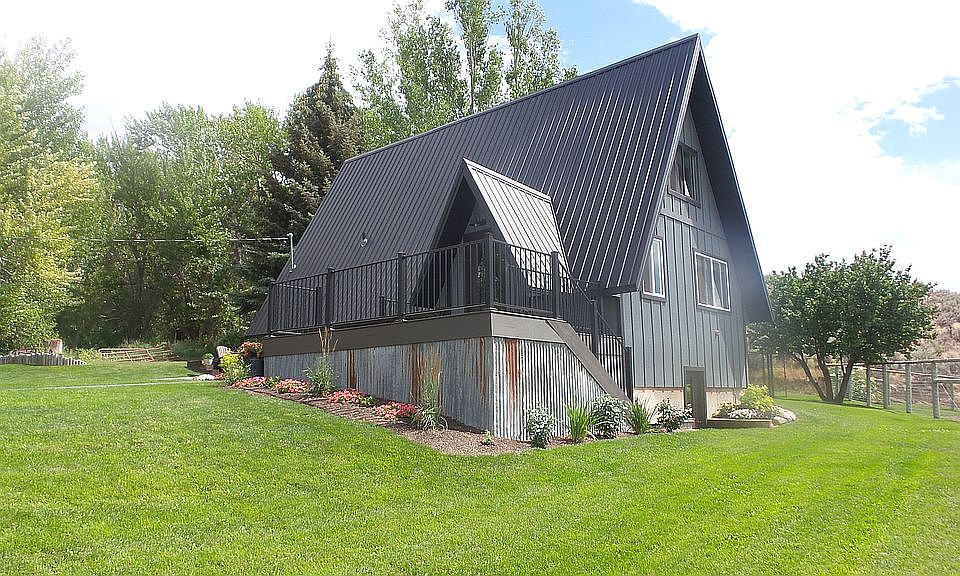 An A frame house with an open loft and one bedroom,a main floor with one bedroom, one full bath,a kitchen and living room, 1/2 basement with storage shelves.A workshop/2 car garage detached.A little garden shed.A10x20 run in shed.A fenced garden area with irrigation dam. A nice backyard fire pit area.