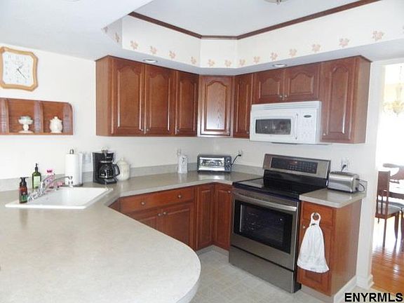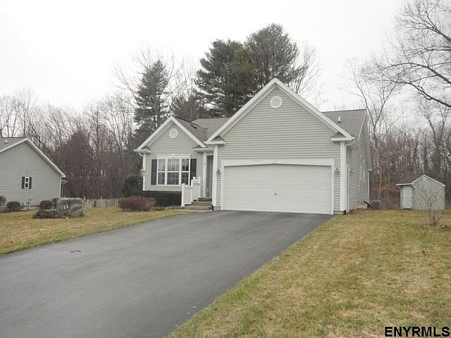 Exceptional, newer Scotia RANCH w/fully finished, carpeted FR w/half-bath in bas'mt. Bright open floor plan includes LR w/gas fireplace & large flat-screen TV (INCLUDED) over mantle, fully appl. kitchen w/pantry & adjacent eating area, PLUS formal dining rm w/full wall decorative mantle-Great for entertaining! The spacious MBR accommodates over-sized furniture, & includes a bath w/dbl vanity & WI closet. The sunroom leads to a deck for outdoor enjoyment. Attic stg in gar, public W&S, sprinkler system, shed
