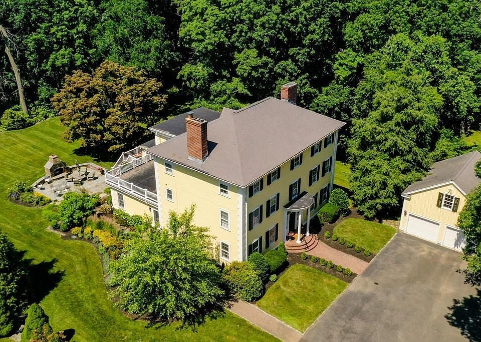 Outside will impress with authentic clapboards, pristine roof, designer landscaping, the rolling lawn framed by towering trees and a snappy outdoor entertainment patio with stone fireplace. Then pass through the grand semi-circular entrance and be awed by soaring ceilings, exquisite classical craftsmanship and extensive updating of this stately masterpiece. A gut kitchen renovation with radiant floor heat and central A/C, new family room, sun room and laundry additions, recessed lighting, 1100-bottle wine cellar, plus a second family room up the back stairs, all blend seamlessly the old with the new. Maintained to perfection from top to bottom: all windows reconditioned, upgraded electric, replacement roof, 6-zone Buderus boilers, French drain, the list goes on. Here is a home where you can enjoy nature's serenity and still be just minutes to Town Center, public schools, Milton Academy, commuter rail, highways, Blue Hills Reservation and Bike Path. This one truly sets itself apart!