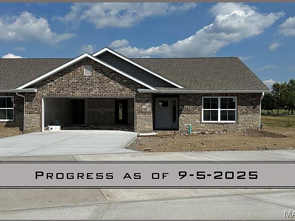 Take advantage of your opportunity to own an UPSCALE new construction villa in the 55+ Serenade Villas community. You'll immediately notice the quality-build when you pull up and see the beautiful brick and stone work on the front of the home. The interior features an OPEN FLOORPLAN with living room and built-in electric fireplace with shiplap surround, kitchen with center island, upgraded cabinetry and granite countertops, dining area, all under the vaulted ceiling offering a nice, airy feel. The primary suite offers a bath with dual vanities, walk-in closet and a tiled shower. There's also a 2nd bedroom + 3rd bedroom/office option. Enjoy the outdoors and fresh air relaxing on your covered patio. Features include NO STEPS throughout the home, luxury vinyl plank flooring, 2-car garage with storage area and more. The location is ideal, near shopping, parks, STOCKED pond, walking trail, dining and interstates.