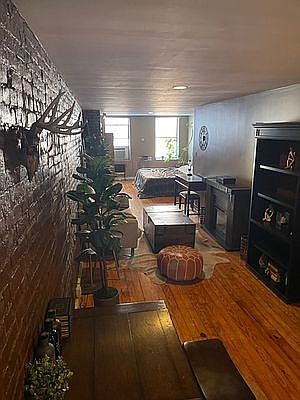 Large Renovated Loft-Like floorthrough studio in a prime location steps away from SOHO & Whole Foods. Separate alcove kitchen, full bath. deco- fireplace with brick exposure.