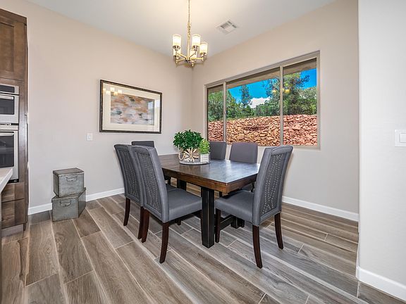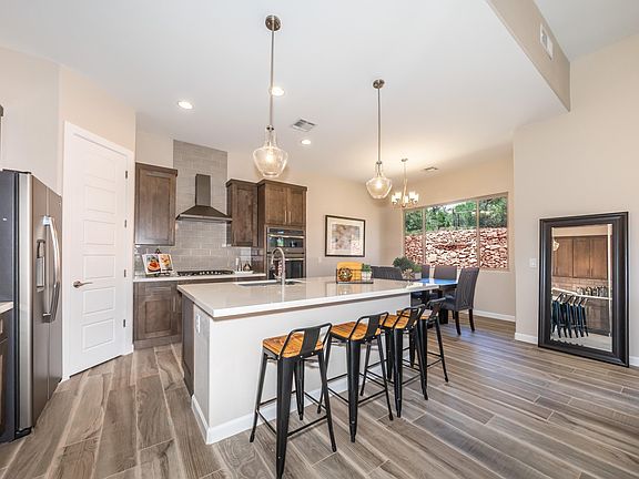 This contemporary NEW home is a split plan with 3 bedrooms and 2.5 baths. The open plan feels larger than 2000 sf. Located in a new court within Thunder Mountain Ranch you will have all new homes surrounding you and ample space between the homes. Additionally you have all the benefits of this upscale community that are in demand: VIEWS; open space including a private Ramada; sidewalks for easy strolling; access to hiking trails; close vicinity to shopping, movies, restaurants, yet with a rural feel. Master bath with both a free-standing tub and shower. Kitchen with quartz counters, pantry, island bar, upgraded appliances and an adjoining breakfast room. Views from the back of the home to Thunder Mountain!