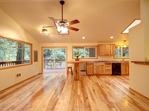 Welcome home to peace & tranquility. Completely remodeled NW contemporary stylings w/ natural wood finishes flowing effortlessly throughout. Tucked away on a quiet, dead end street, enjoy forest views from every room. Bamboo lined drive leads you to an expansive deck, vaulted ceilings, skylights, new appliances, cabinets, hardwoods, custom wood slab counter top, new carpets below, bonus room wired w/ full AV & surround sound. Community amenities: golf course, marina, beaches, YMCA, & hiking.