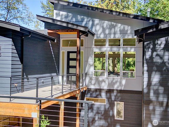 Modern designed 4-bedroom luxury home located with views overlooking the 15th fairway in the lakeside community of Sudden Valley. Enter the home into a massive great room with 12 foot ceilings and an amazing gas fireplace with floor to ceiling surround as the centerpiece. Large windows bring in loads of natural light. The rear deck located off the great room has filtered views of the golf course. The massive kitchen is "to die for"! Enjoy white cabinet package with quartz counters and stainless Frigidaire appliances. The island in the kitchen is 8' by 4' and is wonderful for entertaining. The luxurious primary suite includes a custom spa-like bath with separate soaking tub and massive shower. Bar area down with wine refrigerator.