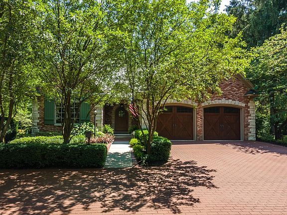 Tucked away among shady trees and lush landscapes, this perfectly composed brick and stone cottage looks as though it has been lifted from the pages of a storybook. With an arched solid Alderwood front door, massive front porch, architectural windows, and wood clad garage doors (with Juliet balcony above), the charm just cannot be overstated. As you enter the property with its stamped asphalt circular drive and follow walkways among fragrant flowering bushes, the fairytale not only comes to life, but has been reimagined with superior construction methods and SmartHome technology. Step inside the 2 story foyer and be astounded by the sheer volume of the interiors, so discreetly downplayed from the road. Solid walnut flooring stretches thru entire main floor (tile in baths, sunroom, utility rm). ALL flooring on 1st floor has 5 zoned radiant heat; solid Alderwood doors are used throughout the home. A commanding staircase with solid hardwood treads, iron railing & waterfall steps rises to the open hallway above, while connecting to the lower level below, creating an architectural masterpiece. Motorized Foyer chandelier lowers for cleaning (Living Rm also). Glimpses of the backyard through 2 sets of transomed French doors flanking the fireplace beckon you into the 2 story vaulted Living Room; beamed ceiling soars to open railing above in a gesture emphasizing the room's expanse and volume. Open to the Living Room and comprising an entire wing of laid back living & casual entertaining, the spectacular Kitchen, Hearth Room and Wet Bar are beyond compare. The Kitchen features Custom Amish cabinets that continue down a 6x15 ft back hall, with built-in appliances and awesome fold-out pantry. Appliances include 2 refrigerators, 6 burner Wolf range, 2 ovens, warming drawer, and microwave. Huge island includes prep sink & breakfast bar; hand painted tile backsplash with pot filler provide functional beauty. Handsome Wet Bar is positioned for serving the entire 1st floor. Alderwood cabinetry with granite tops, hand painted tiles, an ice maker, refrigerator, wine cellar & service sink equip the bar. A casual dining space with window seat is open to the Hearth Rm with massive FP surround, open bookshelves & TV area. An enormous Sunroom off the Hearth Room creates fantastic connectivity between indoors and outdoors. With soaring poplar ceiling, stunning views of the very private backyard, heated tile floors, a dining area & huge sitting area, nothing has been overlooked. French Doors open to paver brick terrace and serene back yard with award winning landscapes! A Formal Dining Room also overlooks the back yard with Venetian Plaster walls, hefty millwork & abundant windows. Architectural Pella Windows with enlarged panes to replicate old European design are used throughout home. The phenomenal 40x15 1st Floor Owner's Suite features vaulted ceiling with whitewashed rough cedar beams rising from 9' to 11'; arched windows frame peaceful views of the yard. Huge Closet has coffee station & island with laundry bins. The breathtaking Bath has natural stone flooring, custom built double vanity, cabinets galore & 3rd Makeup Vanity. The 4x10 ft double walk-in shower features bespoke arched leaded glass window, bench, and his/hers secluded shower areas. A Powder Room with custom vanity and basketweave marble flooring is accessed off the Foyer. The open 2nd floor hallway with walnut flooring & custom railing overlooks the Living Room below. The loft Den has gorgeous built-ins and sophisticated, functional design. Bedroom 2 has en suite bath & cozy sloped ceiling. French Doors open to gracious 3rd Bedroom with 3 closets (1 is cedar) and lovely Jack n Jill Bath shared with the huge Bedroom 4, which features Juliet balconied windows overlooking front yard. 9 ft Basement is set to finish with mechanical rooms and plumbing rough-ins. This very livable home feels warm and casual, not austere. PLEASE SEE attached brochure for FULL DETAILS.